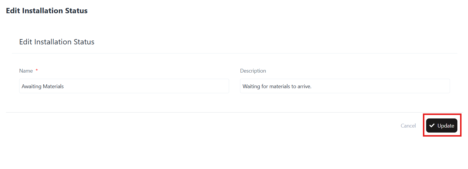 - Name*: The title of the status (e.g., Awaiting Materials).