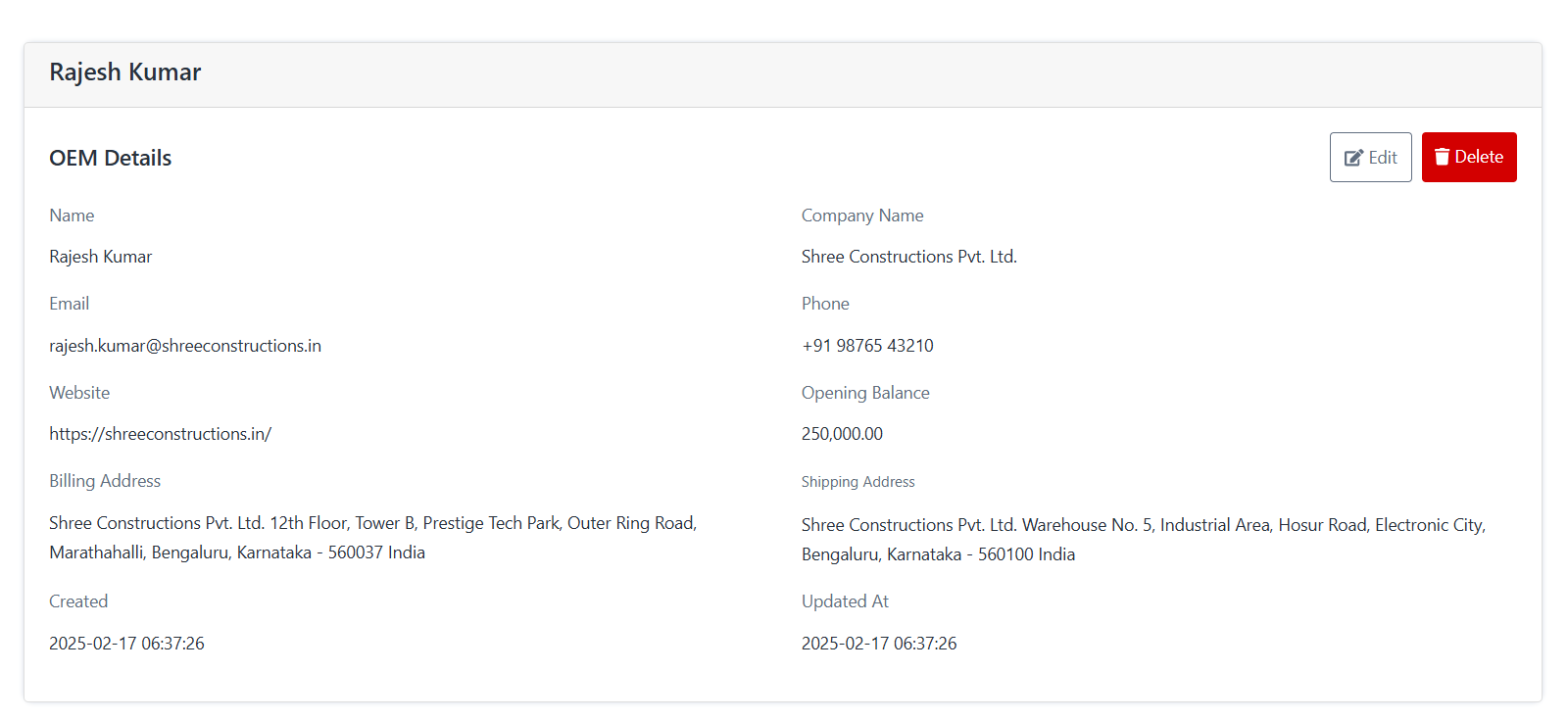 - Update the fields as required (Email, Company Name, Contact, Address, etc.).