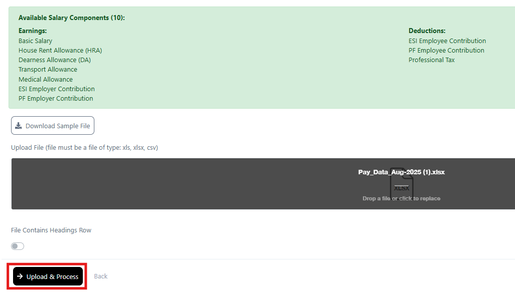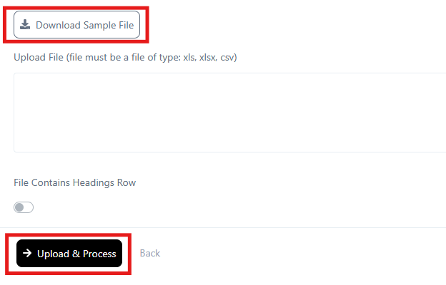 - Then click on Choose a file → select the xls file → then click Upload and Process