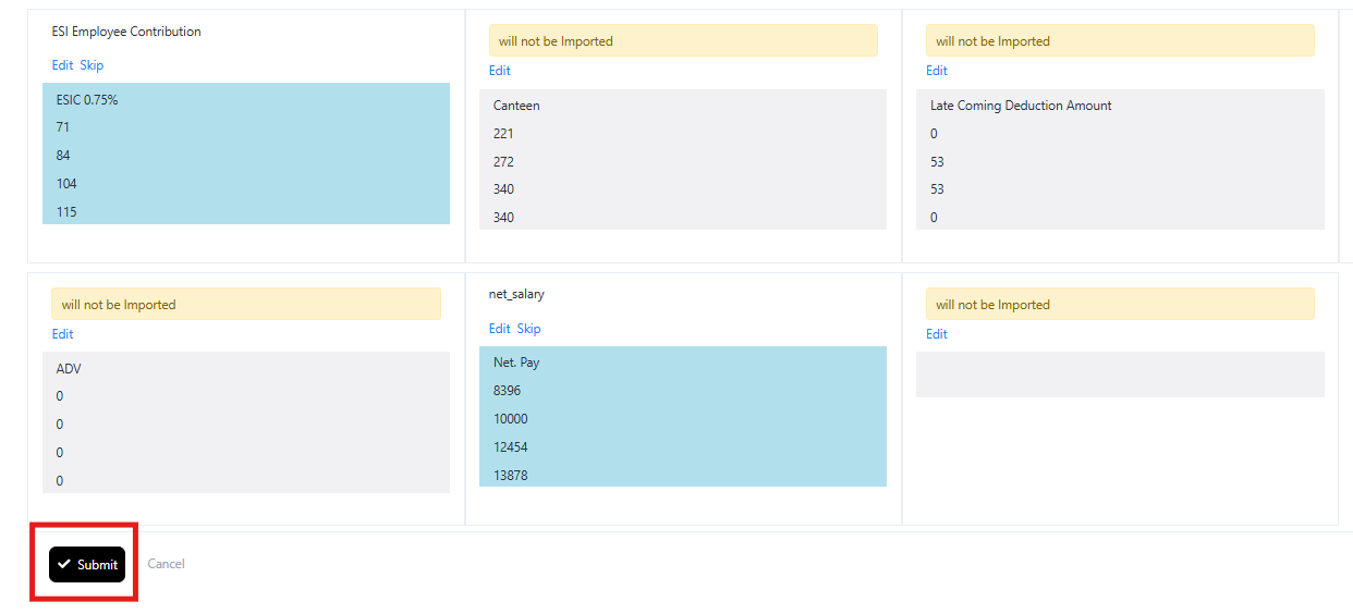 - The file contains predefined column headers required by CrmLeaf (such as Employee ID, Basic Salary, Allowances, Deductions, and Tax).