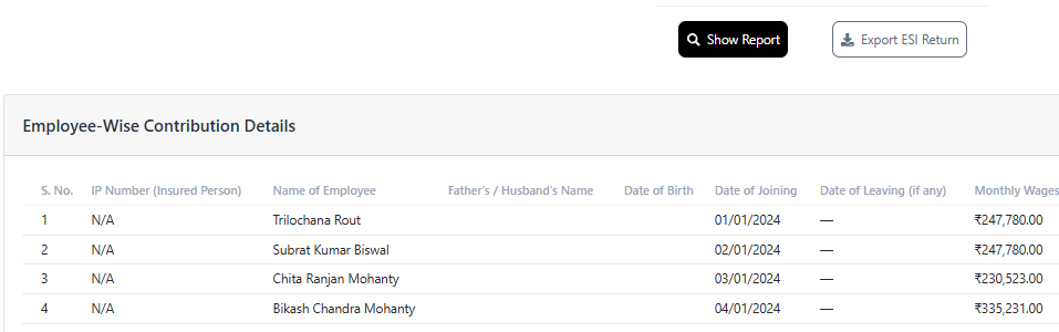 Navigate to the left side of Payroll Report → click on ESI Deduction → click on Export ESI Deduction