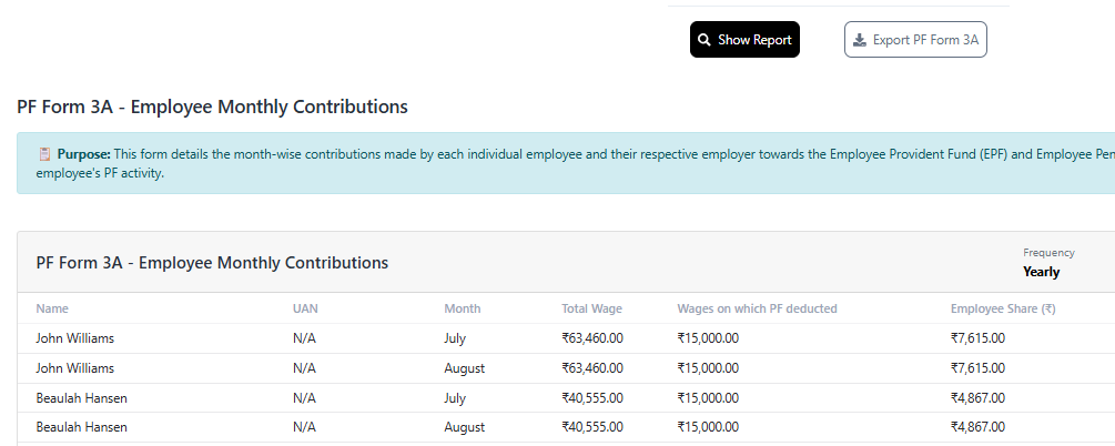 Navigate to the left side of Statutory Filings & Returns → click on PF Form 3A (Monthly) → click on Export PF Form 3A