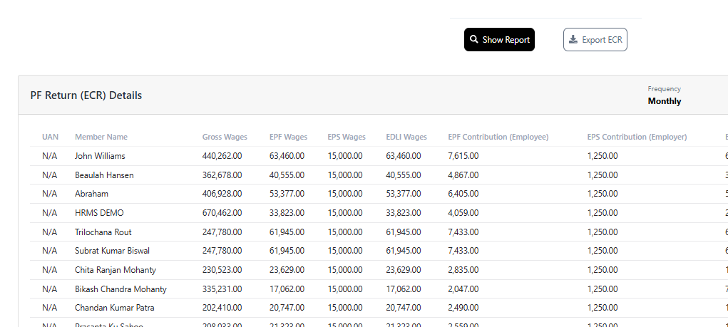 Navigate to the left side of Statutory Filings & Returns → click on PF Return (ECR) → click on Export ECR