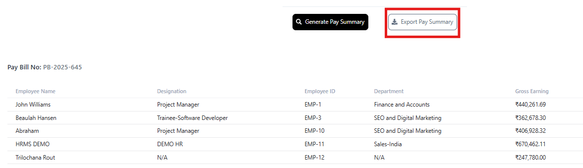 Navigate to the left side of Payroll Report → click on Pay Summary → click on Export Pay Summary