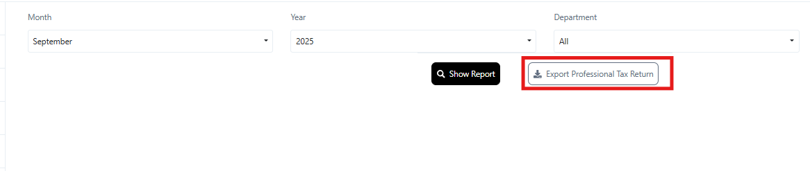 Navigate to the left side of Statutory Filings & Returns → click on Professional Tax Return → click on Export Professional Tax Return