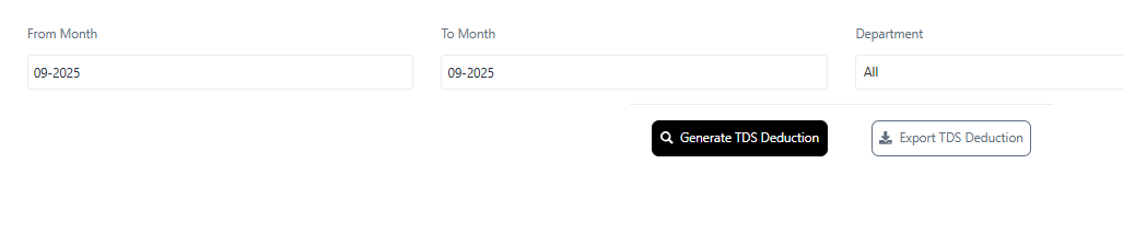 Navigate to the left side of Payroll Report → click on TDS Deduction → click on Export TDS Deduction