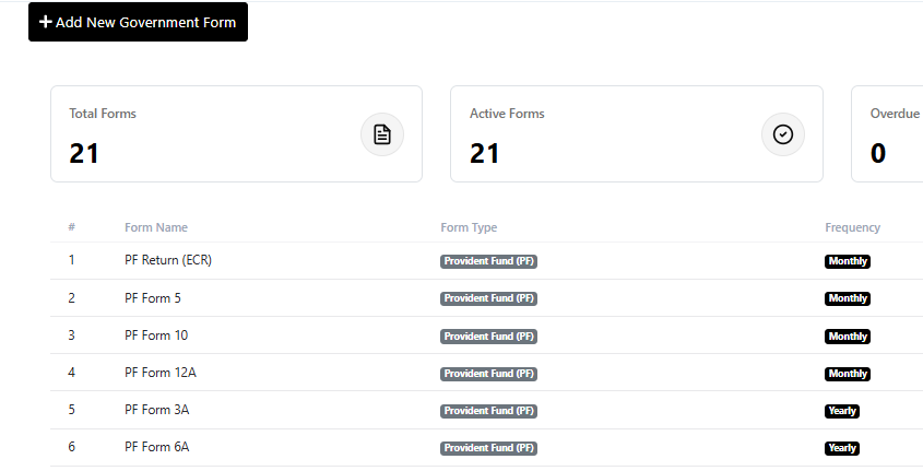 Navigate to the left side of Statutory Filings & Returns → click on Government Forms →View or Edit the form you need